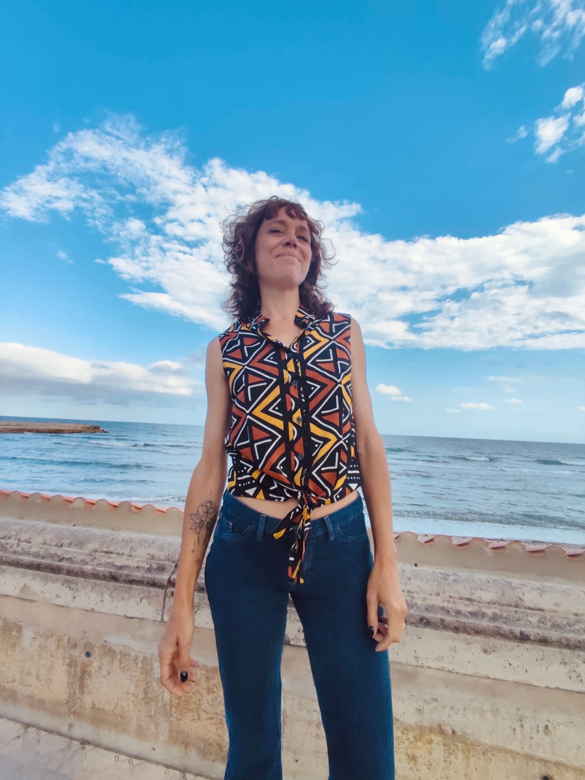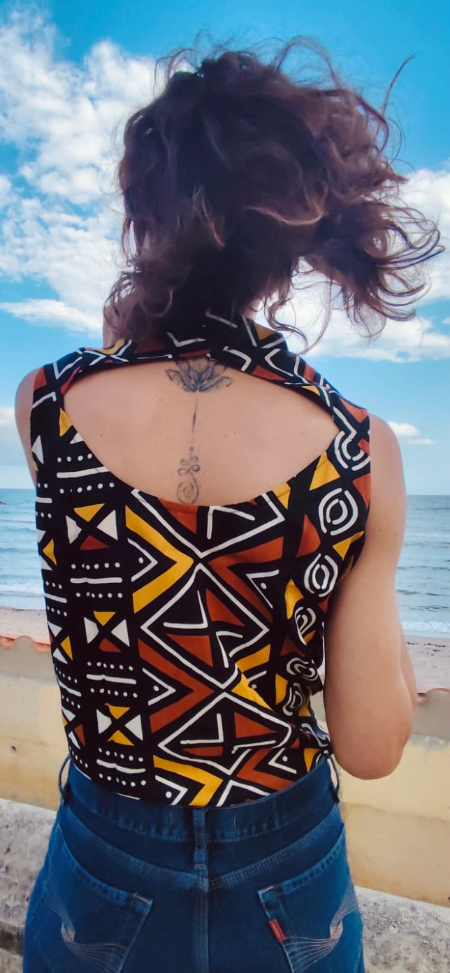 Camisa tejido Rayon , diseño abierto abierto en la espalda y por delante para llevarla anudada.
